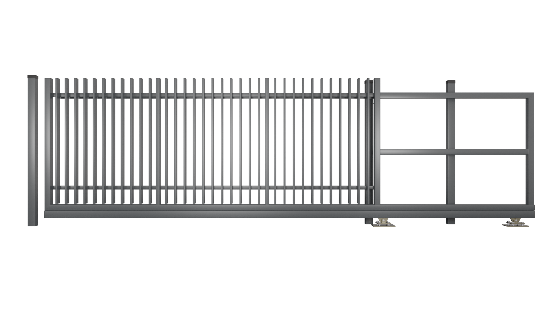 Nowoczesna brama samonośna ogrodzeniowa wypełniona profilem stalowego 80×20 mm ułożonym vertykalnie, rama wykonana z profila 80×60 mm oraz 80×40 mm nadaje całej konstrukcji spójną całość i doskonałą wytrzymałość. Zabezpieczenie antykorozyjne to ocynk następnie malowany proszkowo w nowoczesnej malarni, zabezpieczenie takie daje komfort użytkowania na wiele lat. Brama przesuwna samonośna Brama…