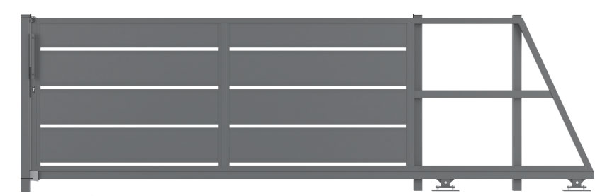 Nowoczesna brama samonośna ogrodzeniowa wypełniona paneli o szerokości 30 mm w kolorze ral 7021 ułożonym horyzontalnie, rama wykonana z profilu 80×80 mm nadaje całej konstrukcji spójną całość i doskonałą wytrzymałość. Zabezpieczenie antykorozyjne to ocynk następnie malowany proszkowo w nowoczesnej malarni, zabezpieczenie takie daje komfort użytkowania na wiele lat. W skład…