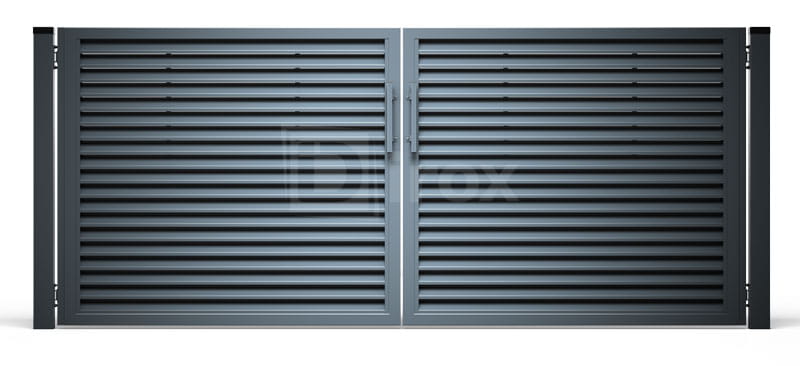 Brama uchylna żaluzjowa PS004 Brama składa się z następujących elementów Skrzydła bramy x 2 szt Słupy opcjonalnie do wyboru z listy Zamek wraz z kompletem 3 kluczy Zawiasy przystosowane do mntażu na słupach stalowych jak i murowanych Bezpieczny rygiel Locinox – możliwość odryglowania tylko przy otwartej bramie Brama standardowo jest…