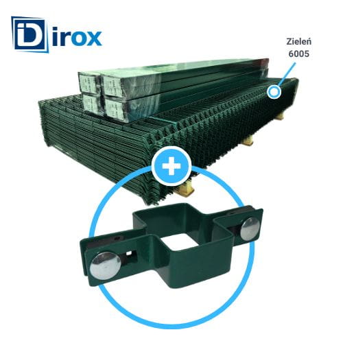 Ogrodzenie 100 mb Otrzymujesz kompletne ogrodzenie panelowe: Marka: Dirox Model: Orion Light Długość ogrodzenia [mb]: 100 Wysokość ogrodzenia [m]: 1,23 m Kolor ogrodzenia: RAL 6005 zieleń Powłoka słupka/panela/obejmy: Ocynk + farba proszkowa Ilość paneli w komplecie [szt]: 39 Rozmiar oczka w panelu [mm]: 50×200 (tol. +/-0,2) Ilość prętów w panelu [szt]: 46 Wysokość słupka…