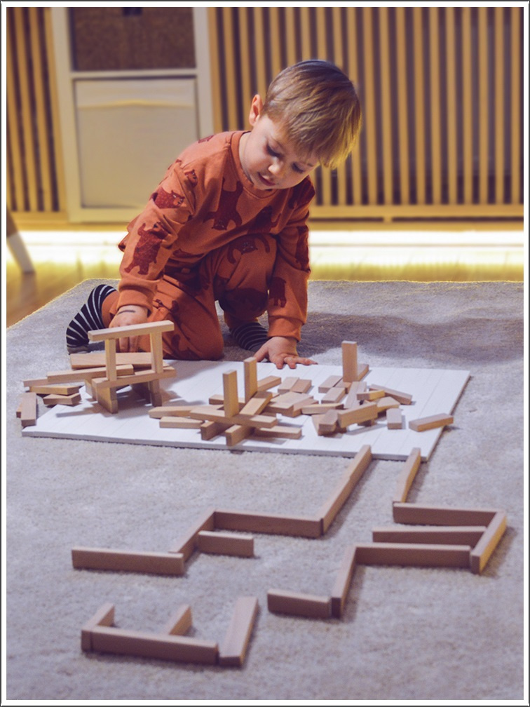 Prostokątne drewniane klocki wykonane z wysokogatunkowego drewna bukowego. Doskonała ekologiczna, naturalna zabawka dla dziecka i dorosłego. Jeden zestaw to 42 klocki długie oraz 12 klocków krótkich. Dzięki przemyślanym wymiarom klocków z łatwością możemy ułożyć najbardziej wymyślne konstrukcje. Jedynym ograniczeniem jest nasza wyobraźnia i ilość posiadanych klocków. Każdy z wymiarów klocka…