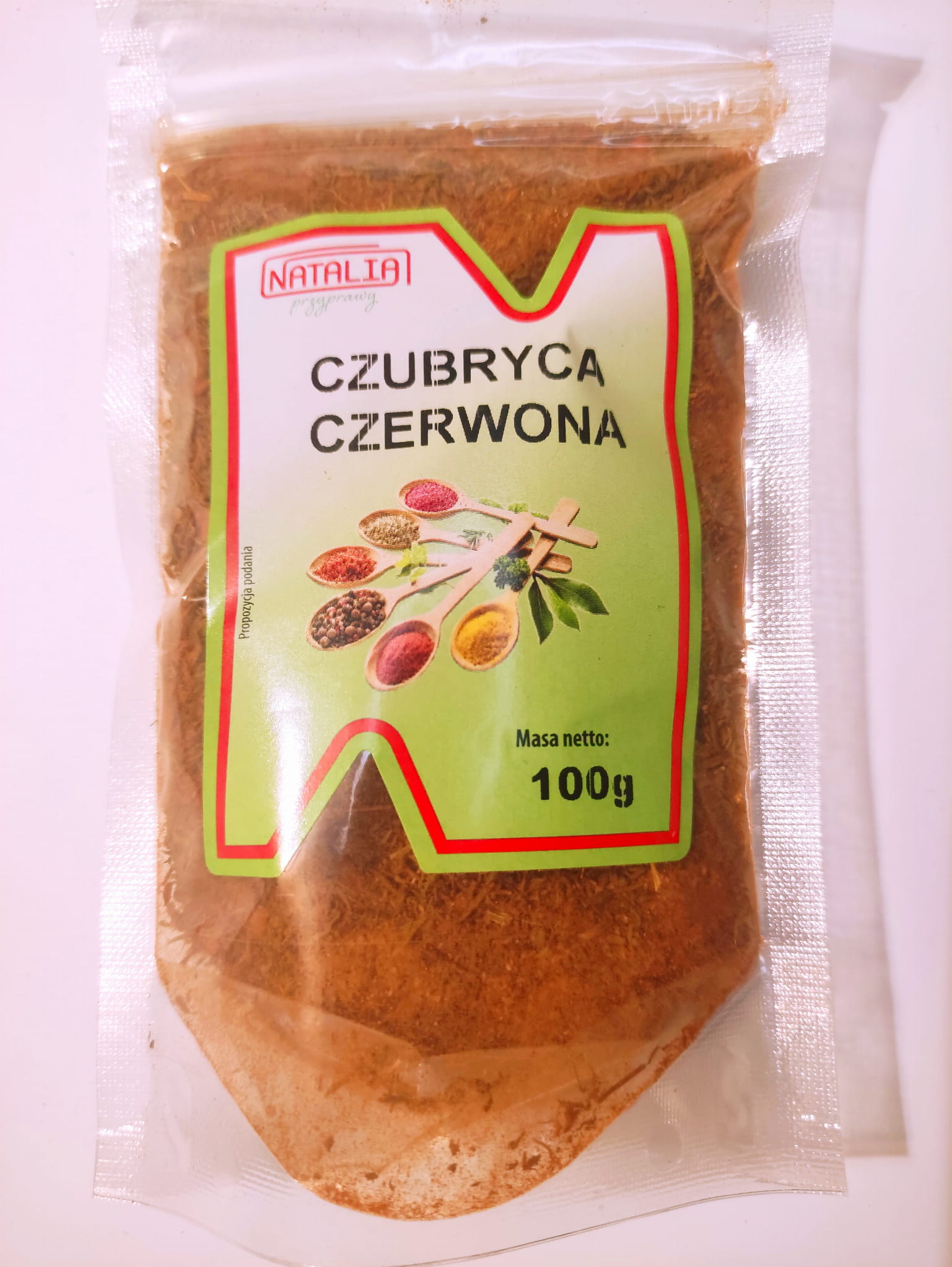 Czubryca czerwona 100 gr. Duża paczka Mieszanka suszonych warzyw, ziół i przypraw. Idealna do dań mięsnych, posiłków z roślin strączkowych, zup oraz wędlin. Przygotowanym potrawom nadaje pikantny smak. Skład: sól, papryka słodka, cząber, tymianek, cukier, marchew, czosnek SO2, chilli. Większa paczka niższa cena 100% naturalne 0% chemii…